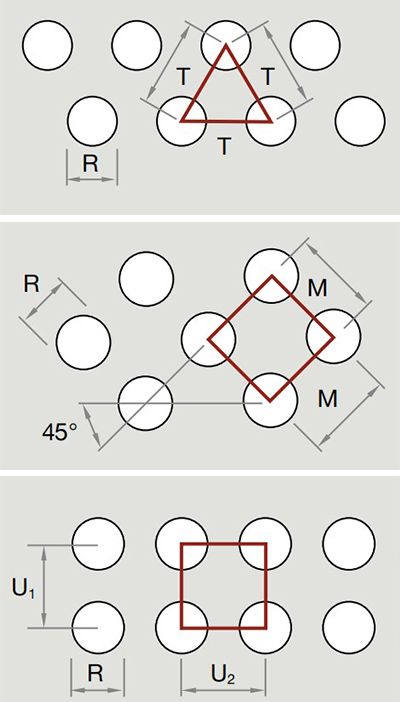 | Round, in 45°staggered rows | |||