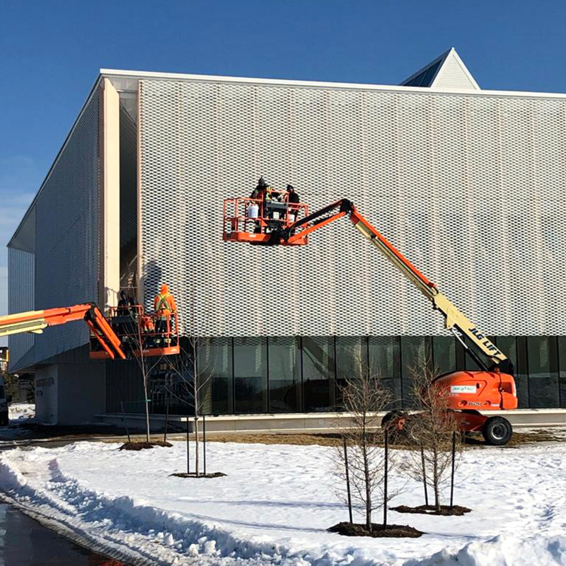 鋼板網幕墻一般采用3mm-5mm厚的鋁板制作,輕巧堅固。 具有陽極氧化或 PVDF 涂層飾面的鋼板網不僅具有迷人的外觀,而且具有出色的耐候性和較長的使用壽命。 因此,它在建筑師和設計師中越來越受歡迎